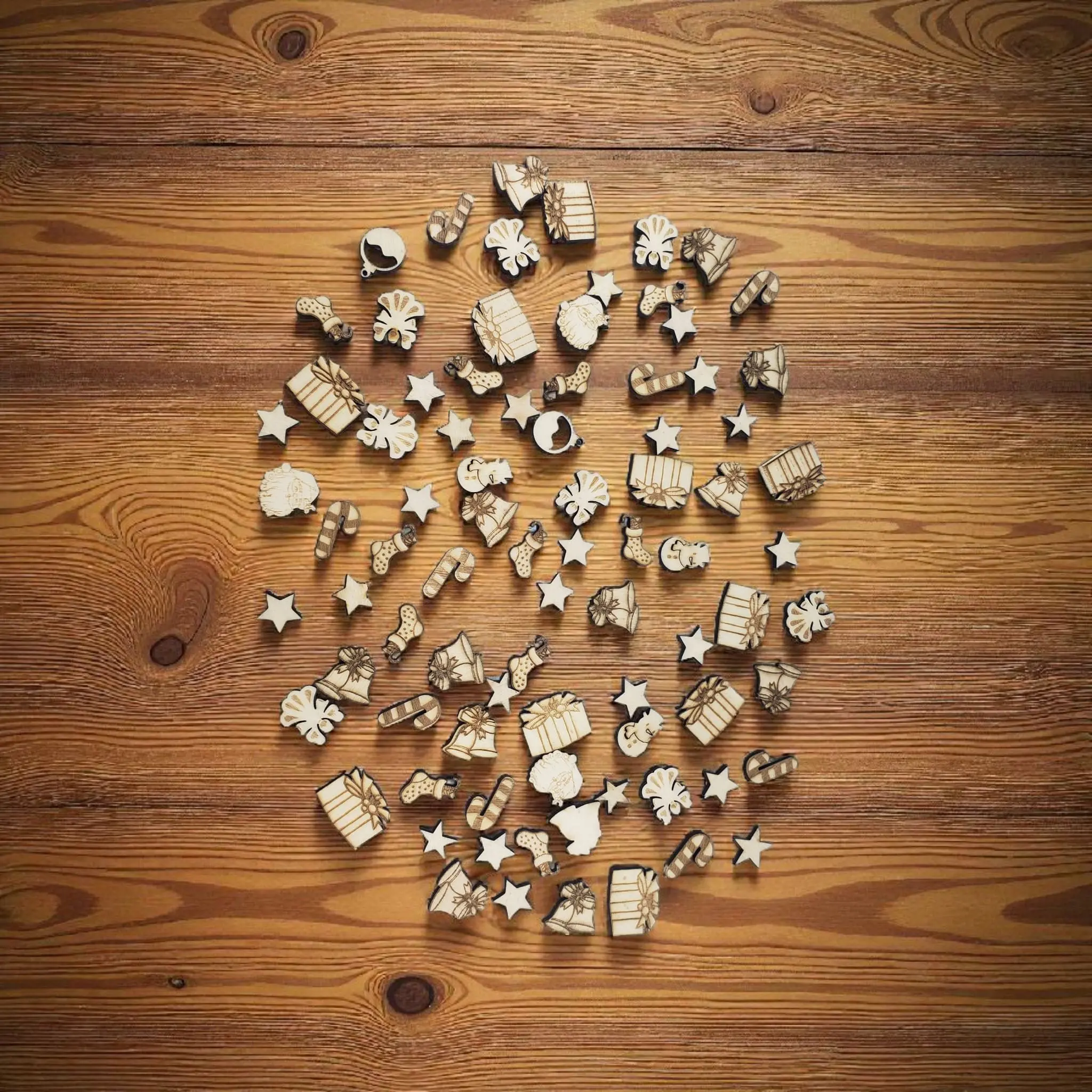 Apportez une touche festive et ludique à votre décoration avec ces confettis de table en bois, parfaits pour compléter une ambiance de Noël chaleureuse. Chaque confetti mesure environ 2 cm et représente l’un des symboles emblématiques des fêtes : sucre d’orge, tête de Père Noël, cadeau, bonhomme de neige...