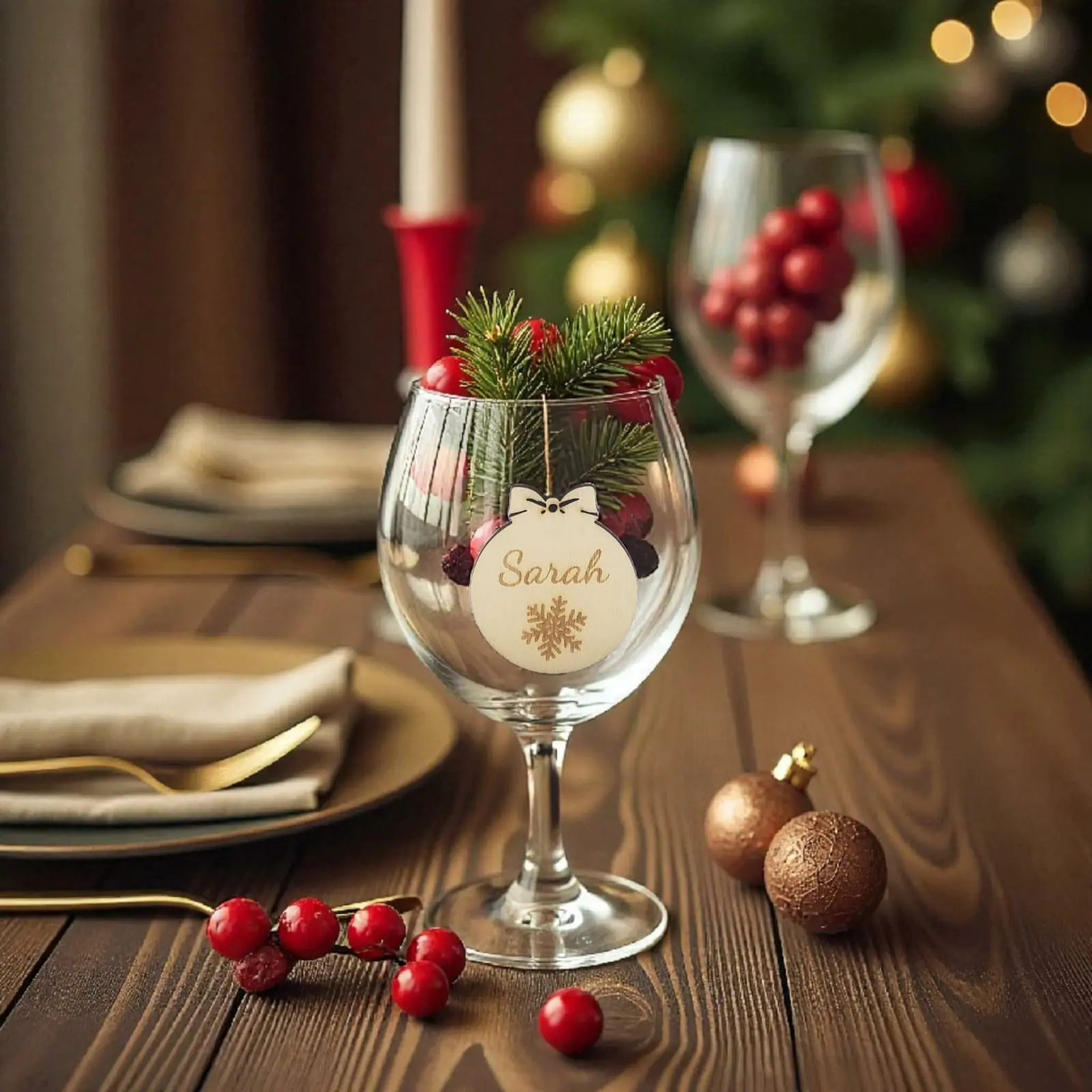 Apportez une touche élégante et personnalisée à votre table de fête avec ces marque-places en forme de boules de Noël. Chaque pièce mesure 4 cm de diamètre et est soigneusement gravée avec le prénom de votre choix, offrant une finition nette et raffinée.
